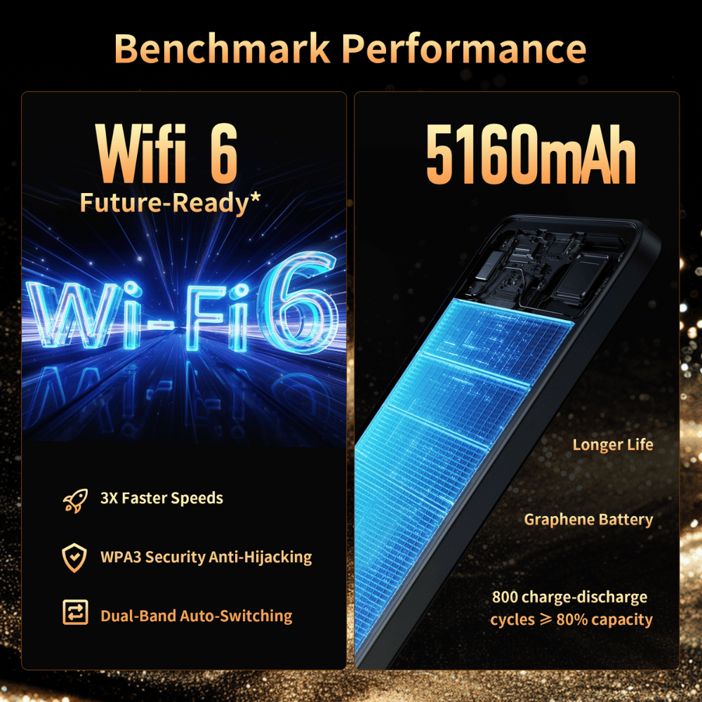 G-Tab G9 搭载 4GB RAM + 128GB 存储,支持最高 2TB 扩展,在 ASR8662 八核平台算力加持下,多任务切换和大型应用运行依然流畅无卡顿。配合 5160mAh 大容量石墨烯电池及芯片高效能耗管理,续航持久,800 多次充放电循环后仍可保持 80% 以上容量。